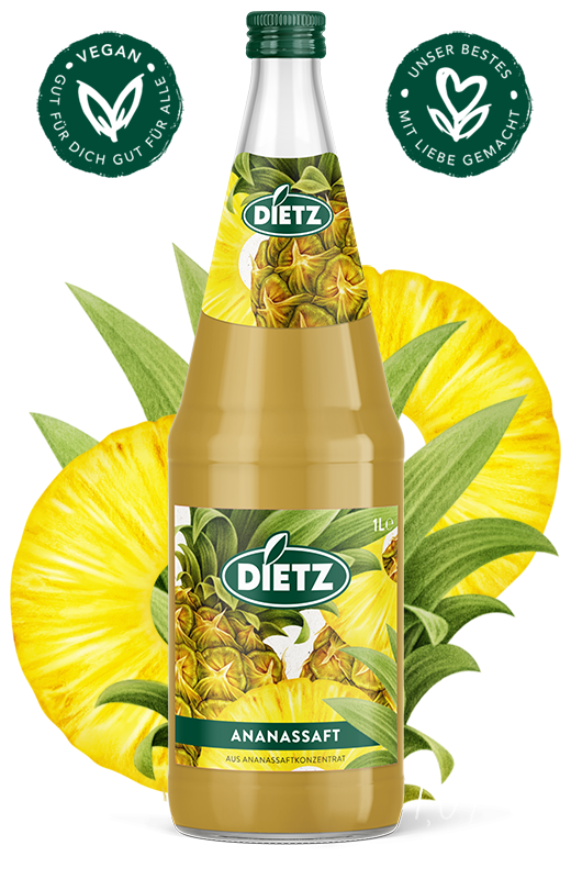 Unser Ananassaft ist tropische Erfrischung pur! Mit seiner sonnigen Süße und dem fruchtig-frischen Geschmack bringt er das Beste der Ananas direkt ins Glas. Ein Schluck und man spürt die sonnengereifte Qualität, die jeden Moment belebt – so schmeckt Ananassaft, der einen Hauch Exotik in den Alltag zaubert.