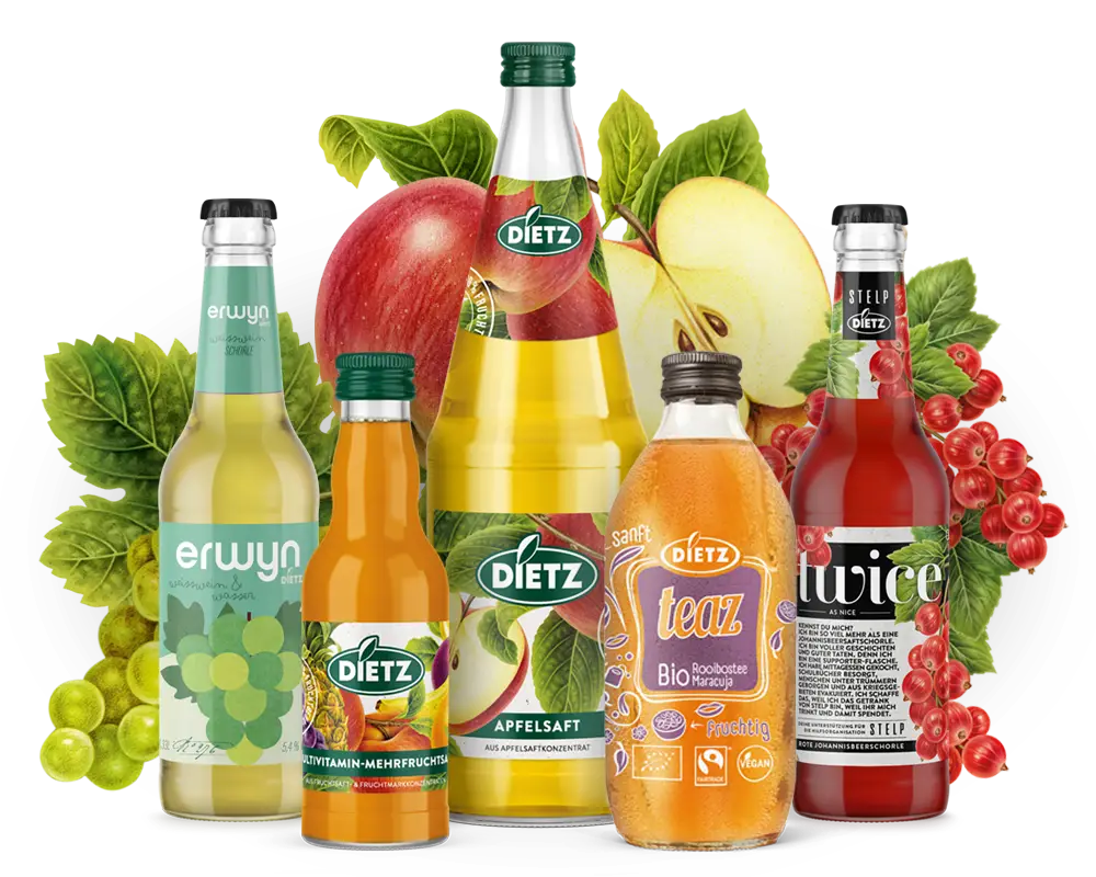 Hier sind sie: Unsere Säfte und Schorlen, die nur darauf warten, deinem Tag ein bisschen mehr Frucht und Frische zu verpassen. Von klassisch bis richtig außergewöhnlich – jedes Produkt erzählt seine eigene fruchtige Story. Schau dich um und finde dein neues Dietz-Lieblingsprodukt.