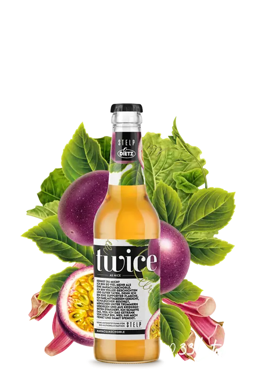 Unsere „twice“ Rhabarberschorle vereint die feine Säure des Rhabarbers mit einer angenehm spritzigen Frische zu einem unverwechselbaren Geschmackserlebnis. Die zarte, fruchtige Note des Rhabarbers bringt eine leichte Süße mit, die perfekt mit der prickelnden Kohlensäure harmoniert und für eine erfrischende Abwechslung sorgt. Mit jedem Schluck tust du nicht nur dir selbst etwas Gutes, sondern unterstützt auch einen guten Zweck: In Zusammenarbeit mit der Hilfsorganisation STELP wird der gesamte Erlös dieser Schorle gespendet. So kannst du die köstliche Rhabarberfrische genießen und gleichzeitig Gutes tun.